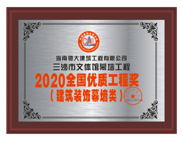 當(dāng)前位置:HOME > 資質(zhì)榮譽(yù) > 2020全國(guó)優(yōu)質(zhì)工程獎(jiǎng) 三沙市文體館幕墻工程